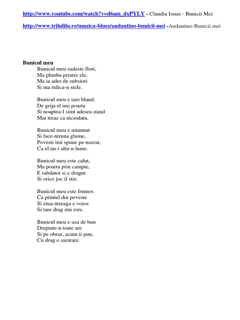 La multi ani bunicule sanatate iubire stima si respect din partea celor dragi. Această poezie demult timp stătea în gînd și în cuget și totuși a fost creată. Faţa i blândă e brăzdată dar nu i t. Forfoteşte casa toată şi în grabă se găteşte căci bunicul nostru astăzi înc un an mai rotunjeşte.