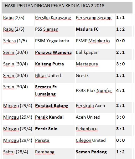 Anda sedang berada di halaman skor langsung liga 2 2020 pada bagian sepak bola indonesia flashscore co id menawarkan livescore liga 2 2020 hasil per bagian hasil akhir kedudukan dan juga detail pertandingan pencetak gol kartu merah perbandingan odds peluang dari liga 2 2020. E meciuri terminate la egalitate. Sebagian tim yang masih menjalani kompetisi di piala indonesia 2018 akan kembali berjuang. 18 tim merupakan peserta musim 2017 3 tim berasal dari promosi liga 3 dan 3 sisanya berasal dari tim yang terdegradasi dari liga 1.