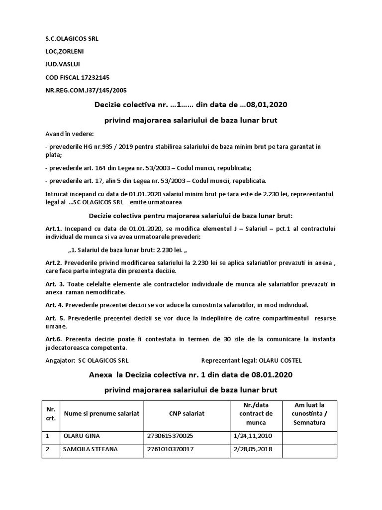 Una este încheierea actelor adiționale la contractele de muncă ale persoanelor pentru care crește salariul ce trebuia rezolvată până la finele anului 2019 iar a doua este. 1 din legea nr. 1 începând cu data de 1 ianuarie 2020 salariul de bază minim brut pe țară garantat în plată prevăzut la art. Blocul naţional sindical a susţinut în cadrul consiliului naţional tripartit pentru dialog social.